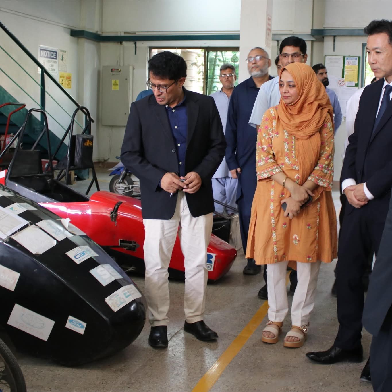 Representing NED University were Prof. Dr. Muhammad Tufail (Vice Chancellor), Prof. Dr. Noman Ahmed (Pro-Vice Chancellor), Prof. Dr. Asad ur Rehman (Dean, CPL), Prof. Dr. Amir Iqbal (Dean, MME), Prof. Dr. Ali Raza Jafri (Chairperson, Automotive Engineering), Syed Ghazanfar Hussain (Registrar), and Dr. Ali Hasan Mahmood (Controller, Student Affairs).